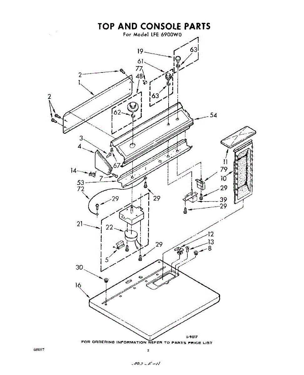 Parts for Whirlpool LFE6900W0: 02 - Top And Console Parts