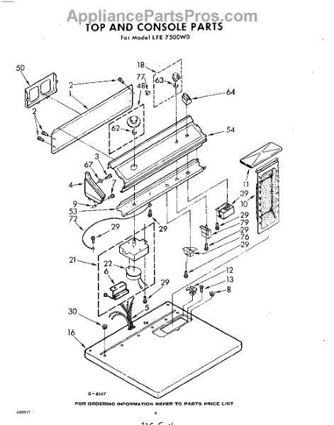 Parts for Whirlpool LFE7500W0: 04 - Top And Console Parts