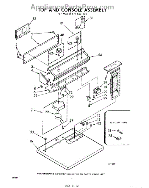 Parts for Whirlpool LFI5531W0: 02 - Top And Console Parts
