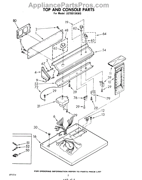 Parts for Whirlpool LG7001XKW0: 02 - Top And Console Parts