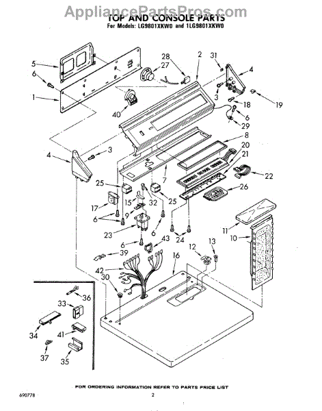 Parts for Whirlpool LG9801XKW0: 02 - Top And Console Parts