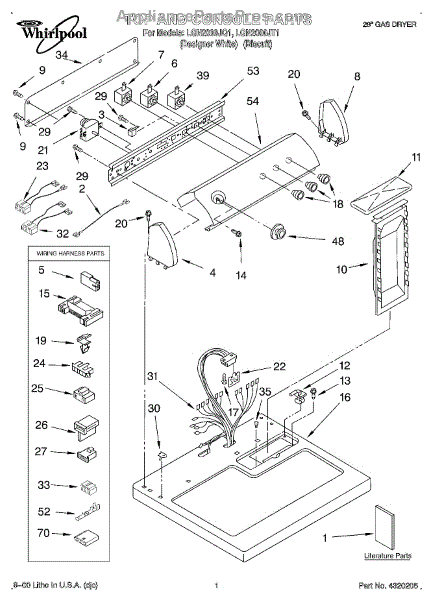 Parts for Whirlpool LGN2000JT1: 01 - Top And Cabinet, Literature Parts
