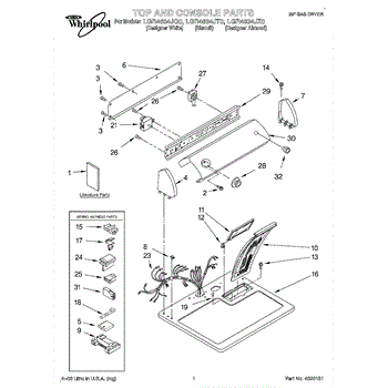 Parts for Whirlpool LGR4634JZ0: 01 - Top And Console, Lit / Optional Parts