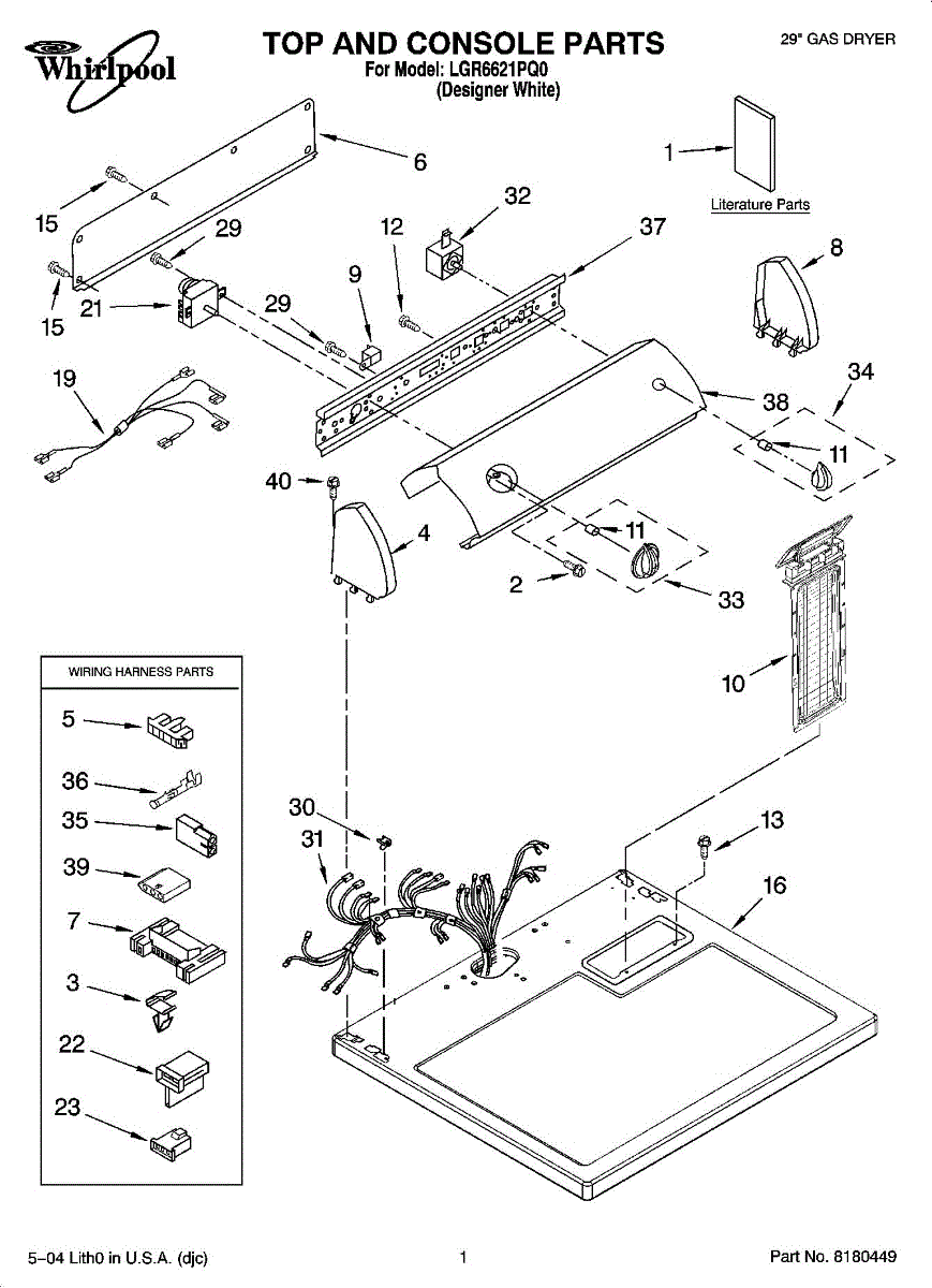 The Dryer Repair Kit is an OEM replacement part for Whirlpool 29-inch large capacity dryer models. It is a kit designed to provide various essential components and hardware needed for common dryer repairs or maintenance tasks.