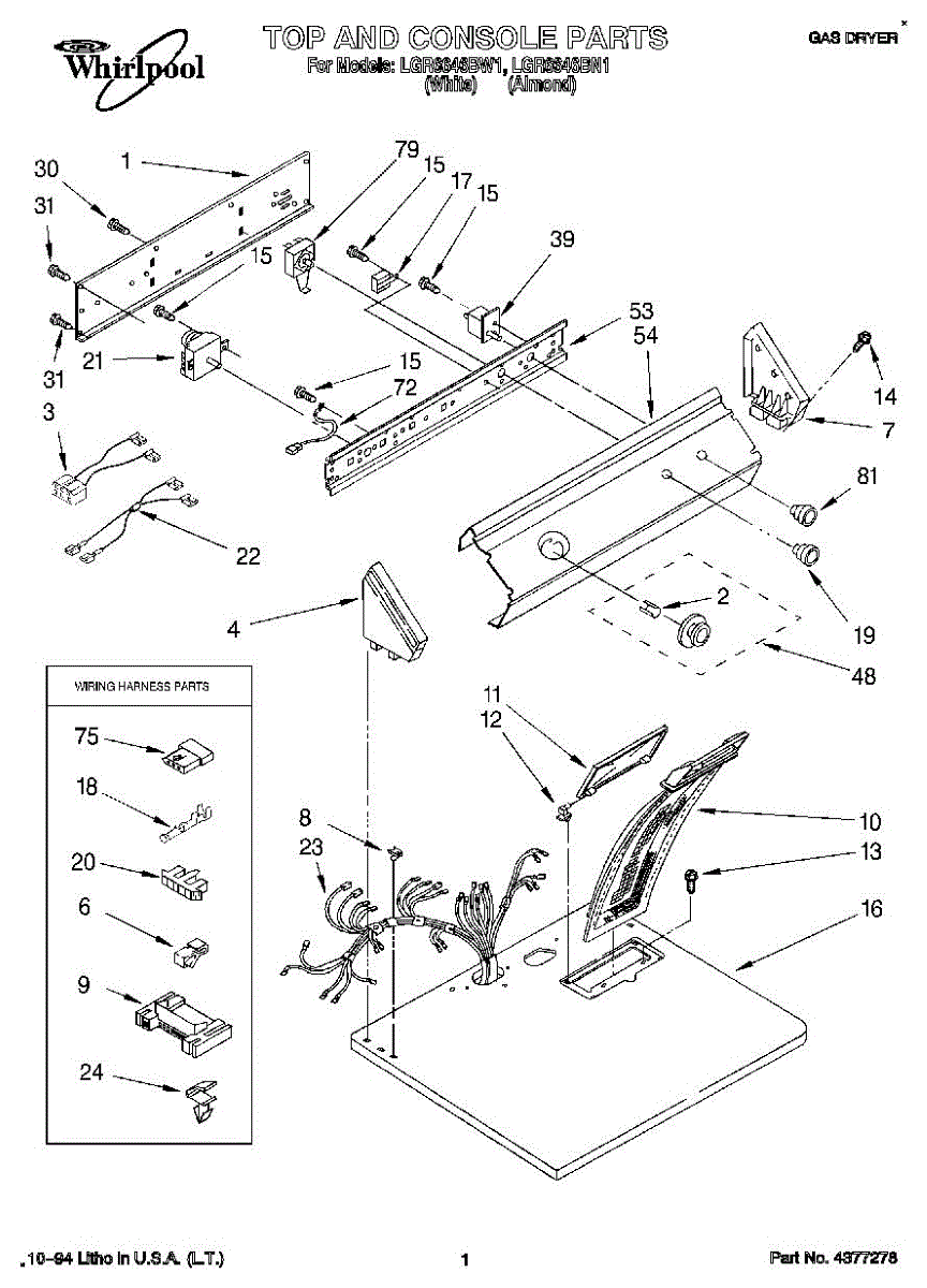 Wire harness assembly that routes power and control signals between dryer components. Replace if wires are damaged, worn, broken, or connections are loose.