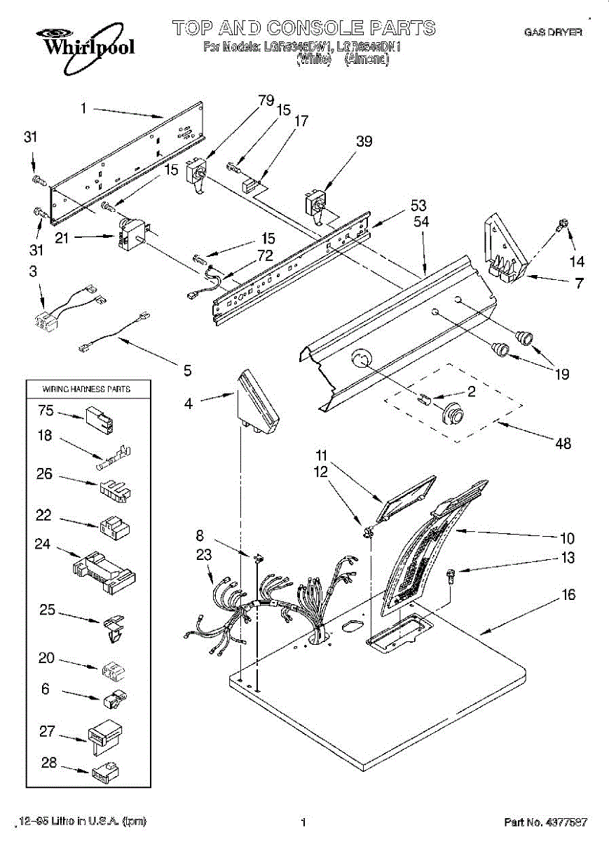 Wire harness assembly that routes power and control signals between dryer components. Replace if wires are damaged, worn, broken, or connections are loose.