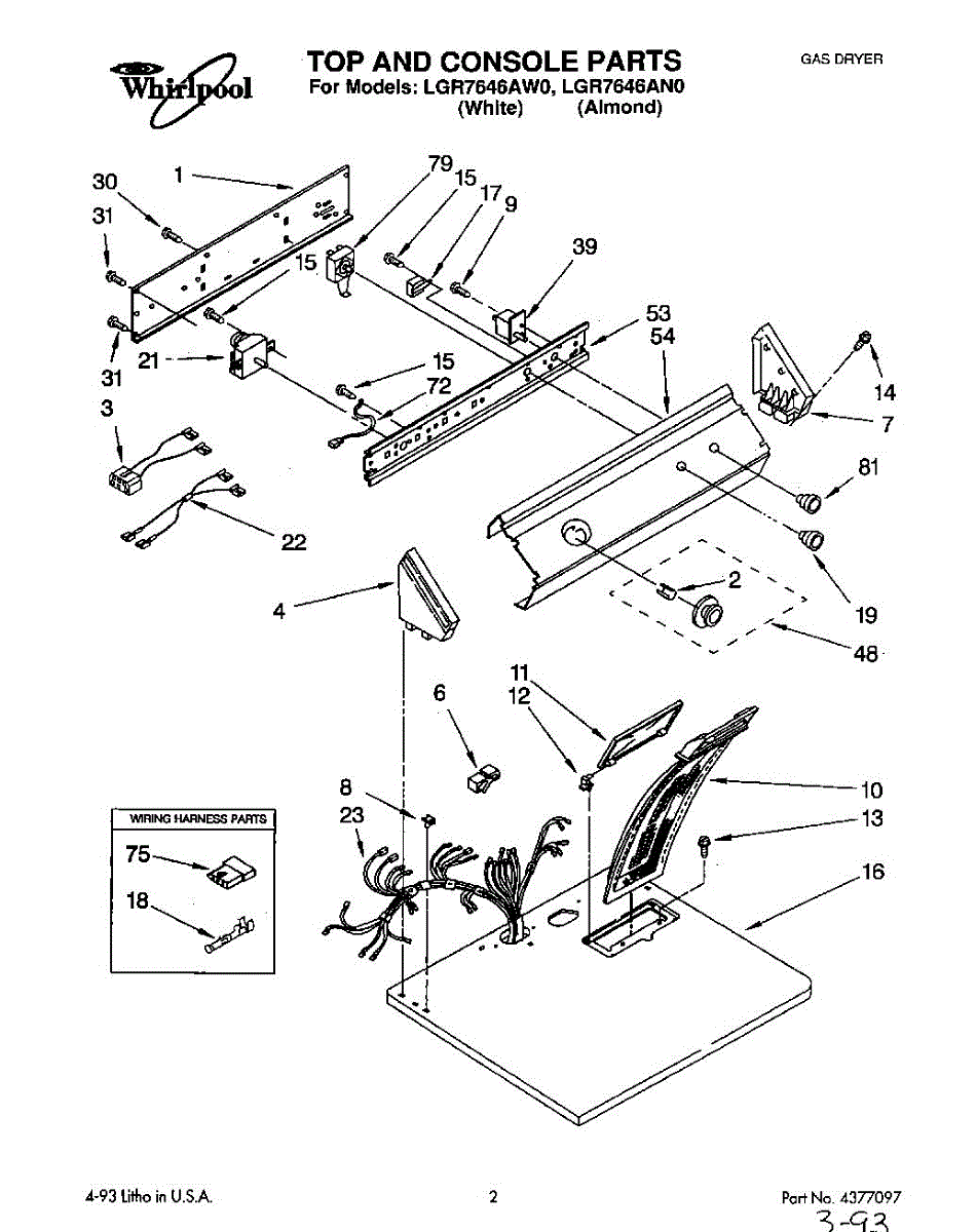 Wire harness assembly that routes power and control signals between dryer components. Replace if wires are damaged, worn, broken, or connections are loose.