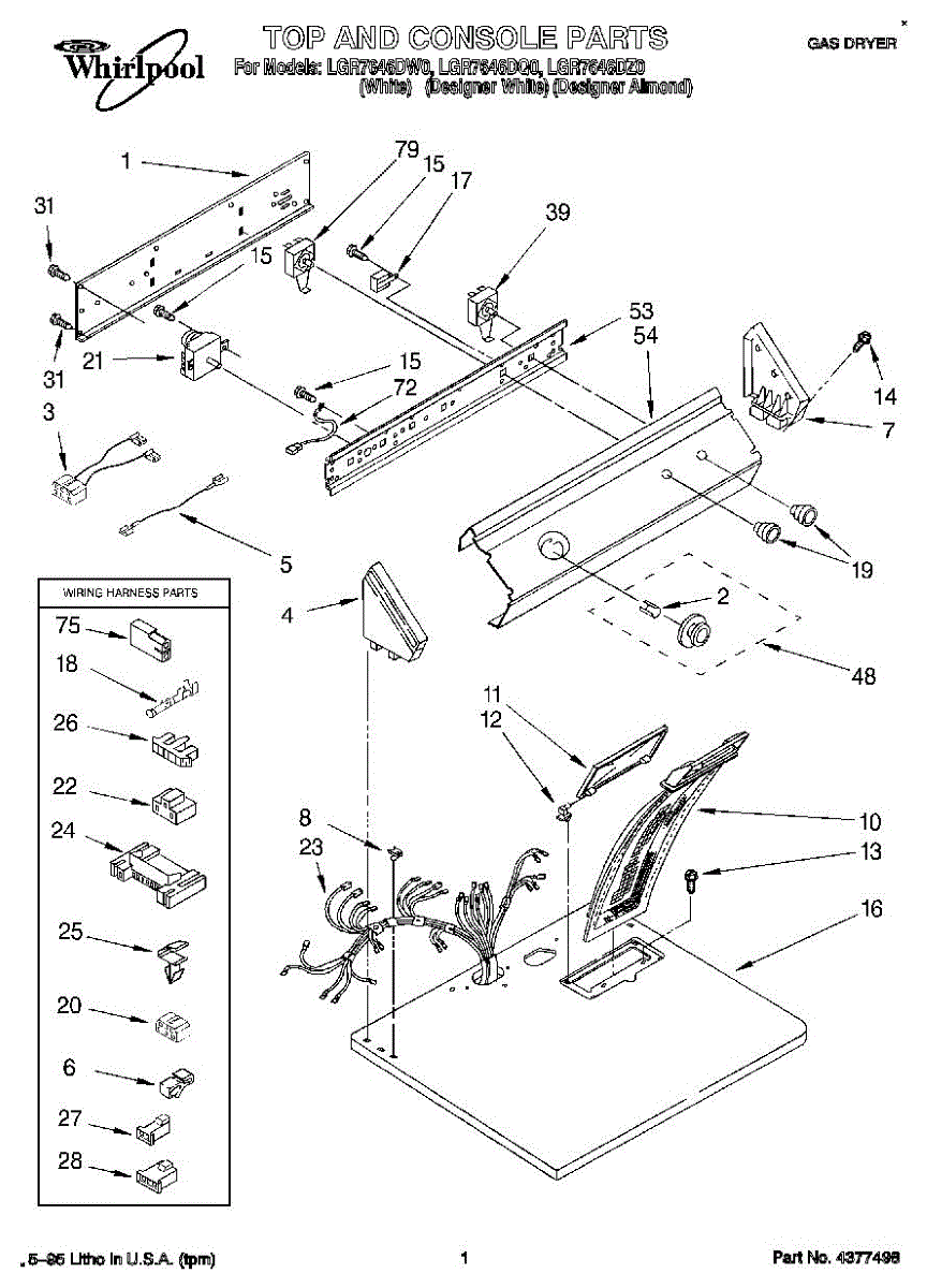 Wire harness assembly that routes power and control signals between dryer components. Replace if wires are damaged, worn, broken, or connections are loose.