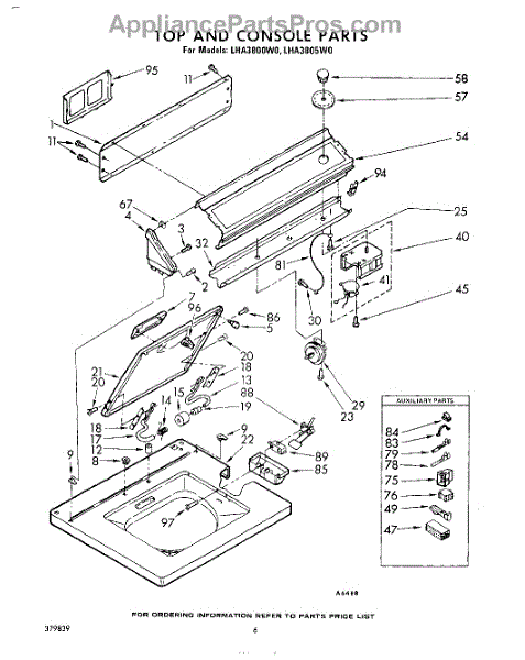 Parts for Whirlpool LHA3805W0: 06 - Top And Console Parts