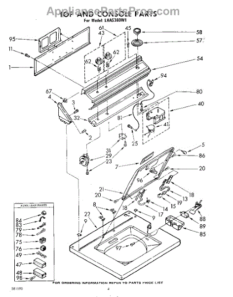 Parts for Whirlpool LHA5380W1: 04 - Top And Console Parts