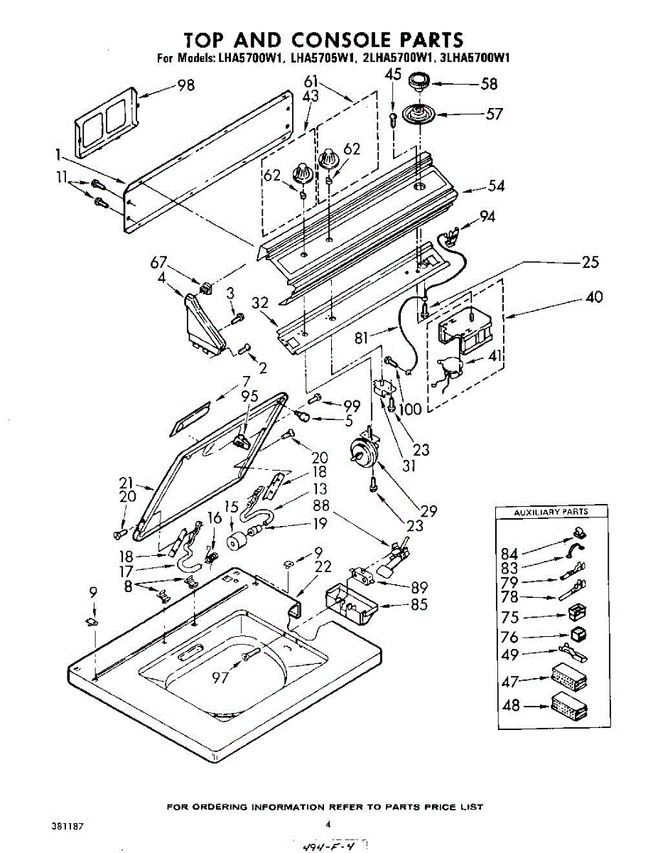 Parts for Whirlpool LHA5700W1: 04 - Top And Console Parts