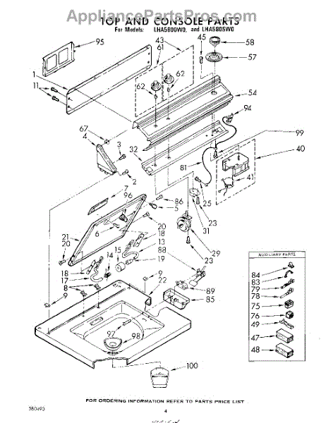 Parts for Whirlpool LHA5805W0: 04 - Top And Console Parts