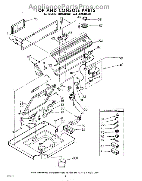 Parts for Whirlpool LHA5805W1: 04 - Top And Console Parts