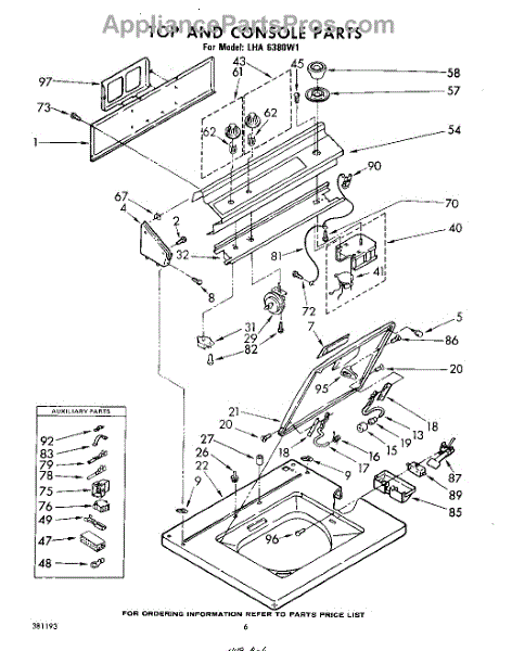 Parts for Whirlpool LHA6380W1: 06 - Top And Console Parts
