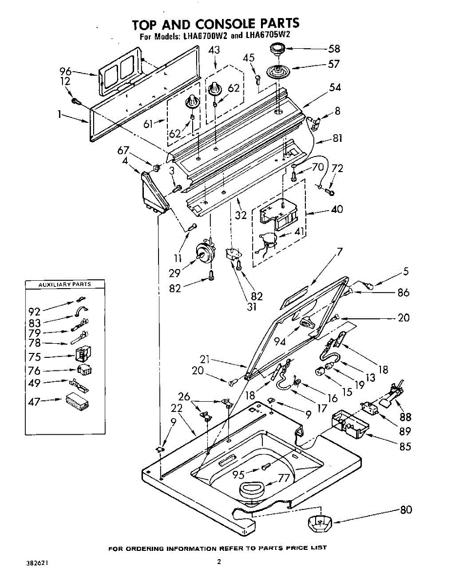 Parts for Whirlpool LHA6705W2: 02 - Top And Console Parts