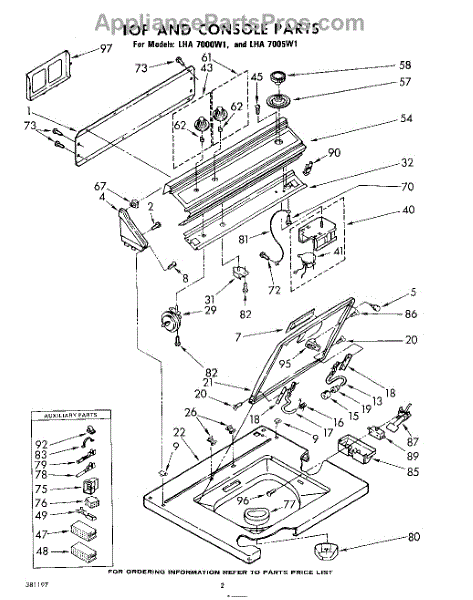 Parts for Whirlpool LHA7000W1: 02 - Top And Console Parts