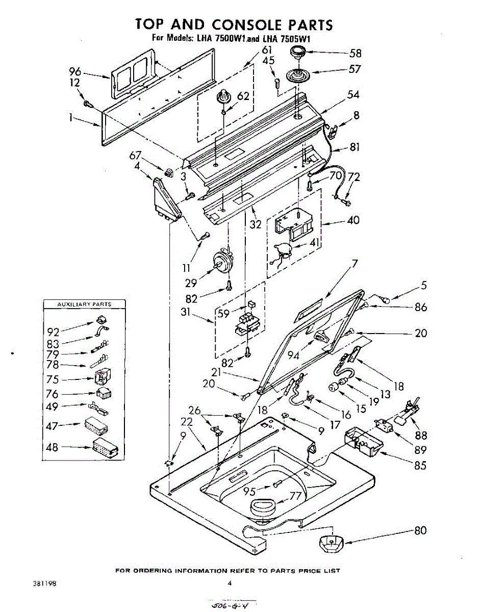 Parts for Whirlpool LHA7500W1: 04 - Top And Console Parts