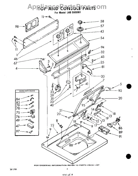 Parts for Whirlpool LHB5500W1: 04 - Top And Console Parts