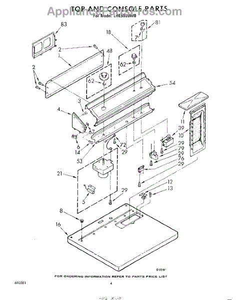 Parts for Whirlpool LHE5800W0: 04 - Top And Console Parts