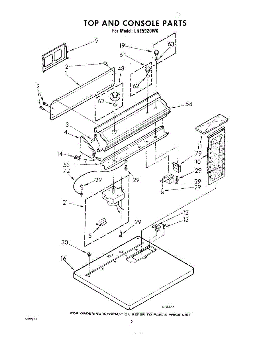Parts for Whirlpool LHE5920W0: 02 - Top And Console Parts