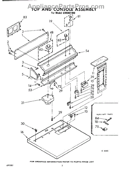 Parts for Whirlpool LHI5801W0: 02 - Top And Console Parts