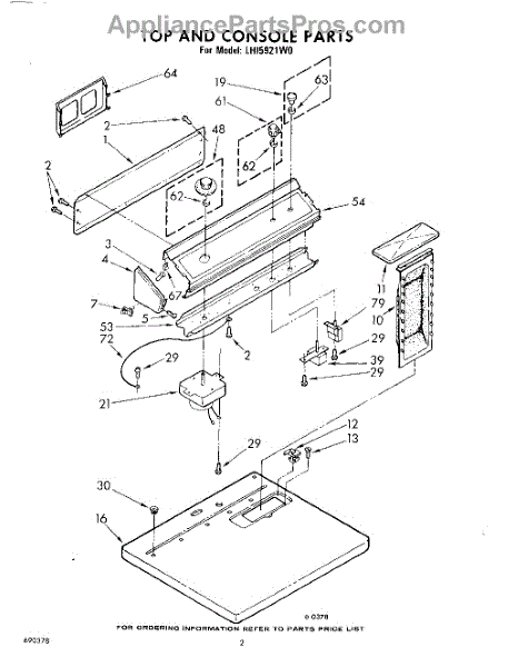 Parts for Whirlpool LHI5921W0: 02 - Top And Console Parts