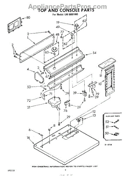 Parts for Whirlpool LHI6681W0: 02 - Top And Console Parts