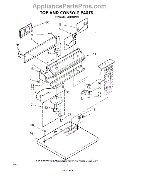 Parts for Whirlpool LHI6901W0: 02 - Top And Console Parts