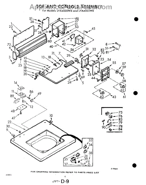 Parts for Whirlpool LVA4005W6: 04 - Top And Console Parts