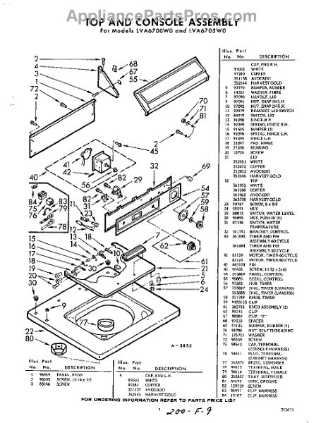 Parts for Whirlpool LVA6700W0: 05 - Top And Console Parts