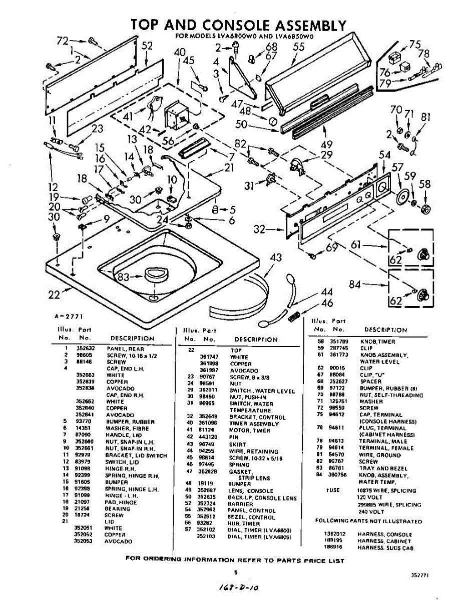 Parts for Whirlpool LVA6800W0: 05 - Top And Console Parts