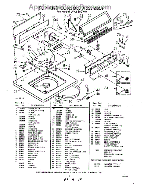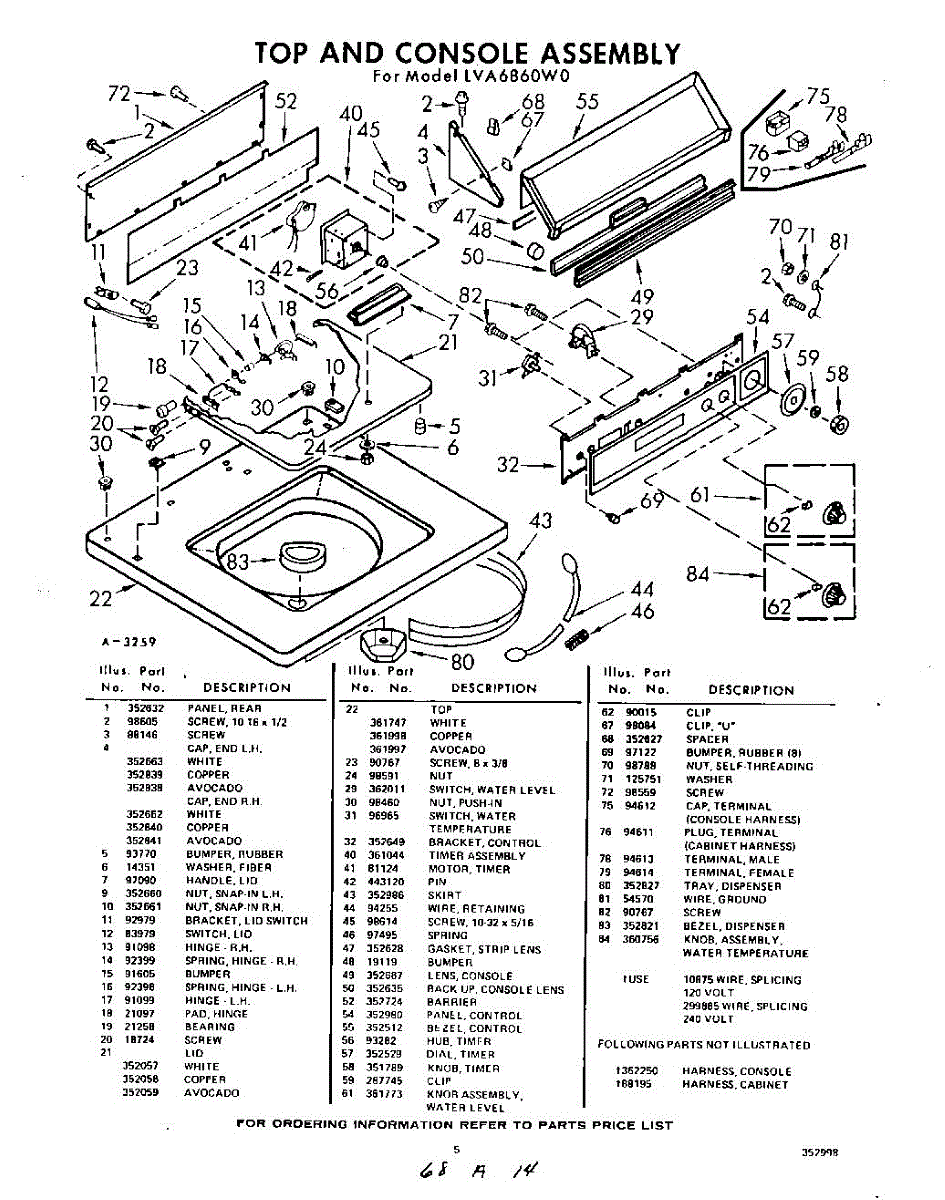 Parts for Whirlpool LVA6860W0: 05 - Top And Console Parts