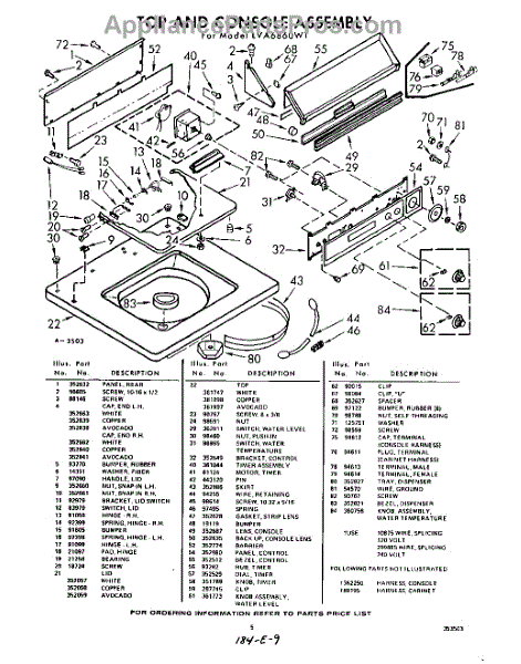 Parts for Whirlpool LVA6860W1: 05 - Top And Console Parts