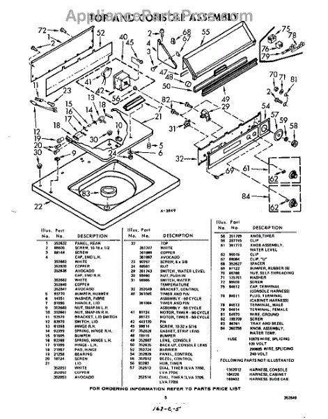 Parts for Whirlpool LVA7700W0: 05 - Top And Console Parts