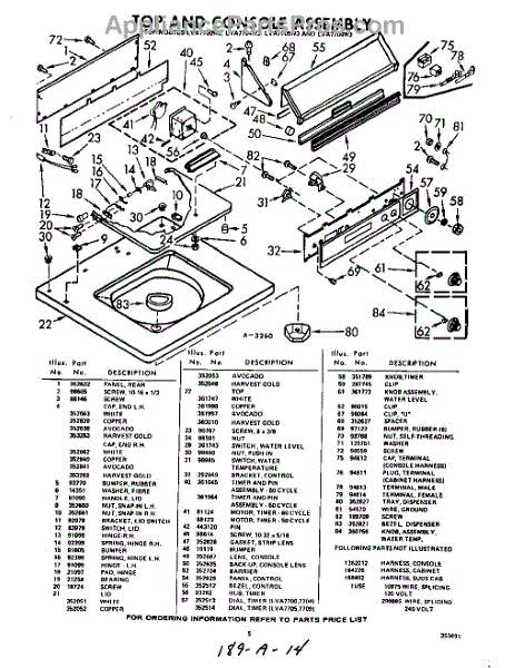 Parts for Whirlpool LVA7700W3: 05 - Top And Console Parts