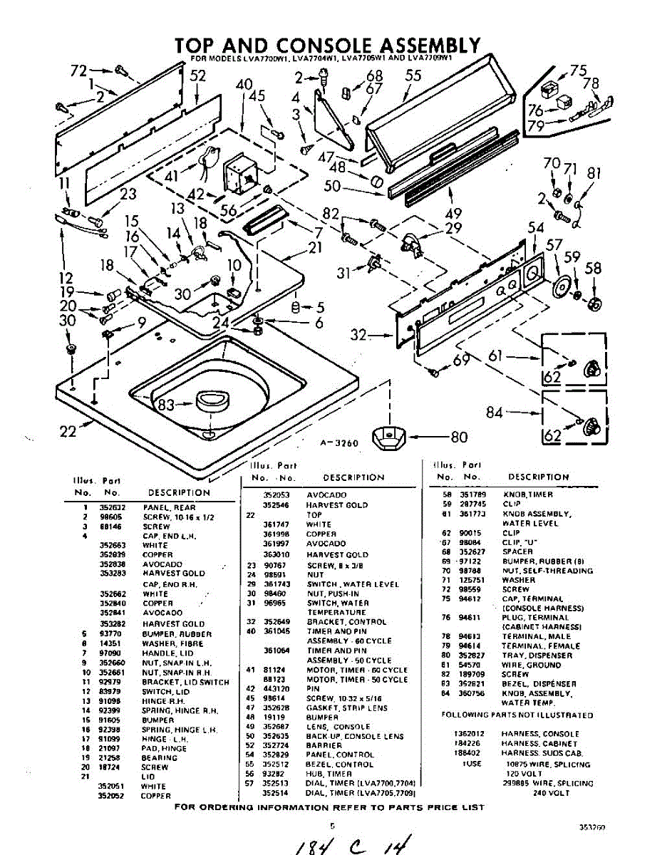 Parts for Whirlpool LVA7709W1: 05 - Top And Console Parts
