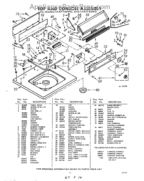 Parts for Whirlpool LVA7745W0: 05 - Top And Console Parts