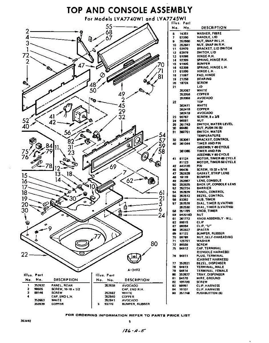 Parts for Whirlpool LVA7745W1: 05 - Top And Console Parts