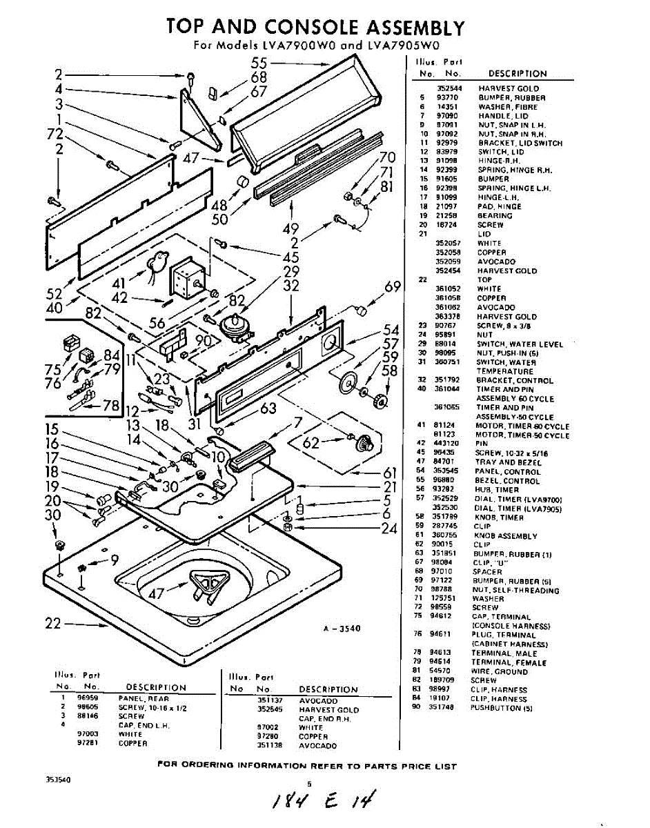 Parts for Whirlpool LVA7905W0: 05 - Top And Console Parts