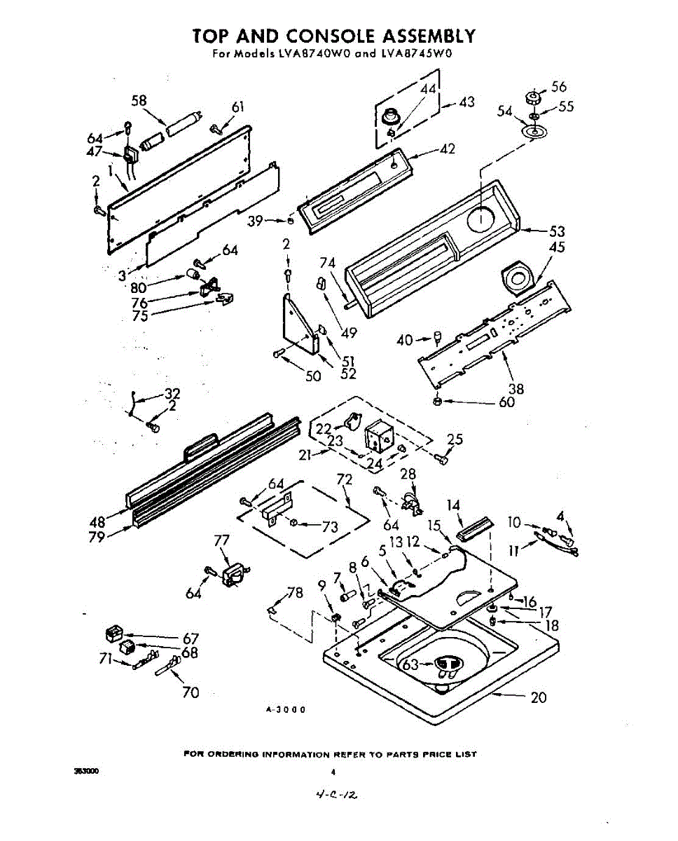 Parts for Whirlpool LVA8740W0: 04 - Top And Console Parts