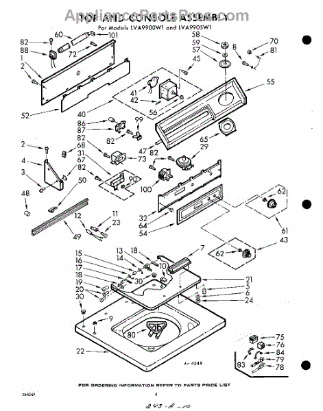 Parts for Whirlpool LVA9900W1: 04 - Top And Console Parts