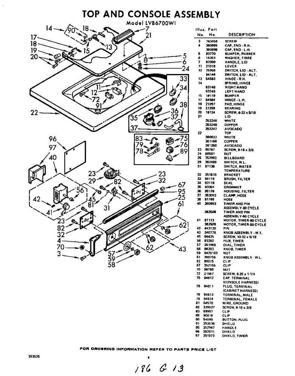 Parts for Whirlpool LVB6700W1: 04 - Top Console Parts