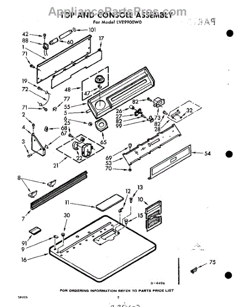 Parts for Whirlpool LVE9900W0: 02 - Top And Console Parts
