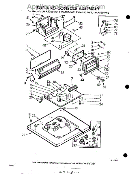 Parts for Whirlpool LWA5309W2: 04 - Top And Console Parts