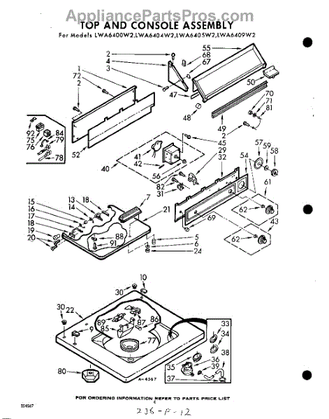 Parts for Whirlpool LWA6409W2: 04 - Top And Console Parts