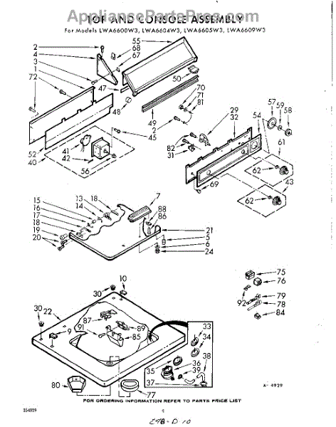 Parts for Whirlpool LWA6604W3: 04 - Top And Console Parts