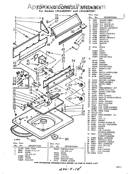 Parts for Whirlpool LWA6800W1: 05 - Top And Console Parts