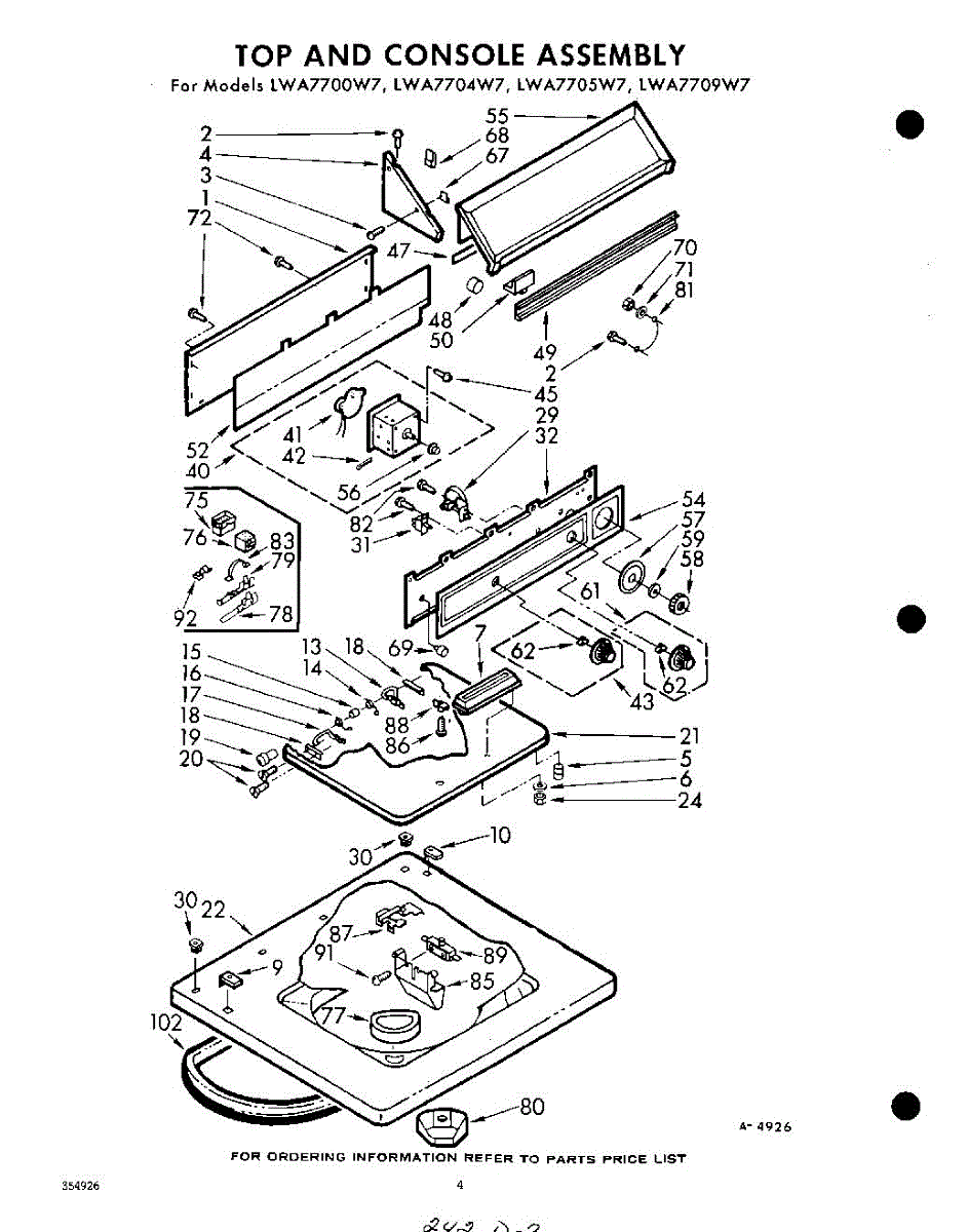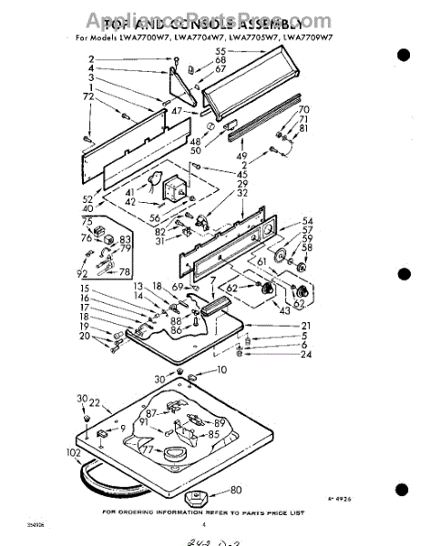 Parts for Whirlpool LWA7709W7: 04 - Top And Console Parts