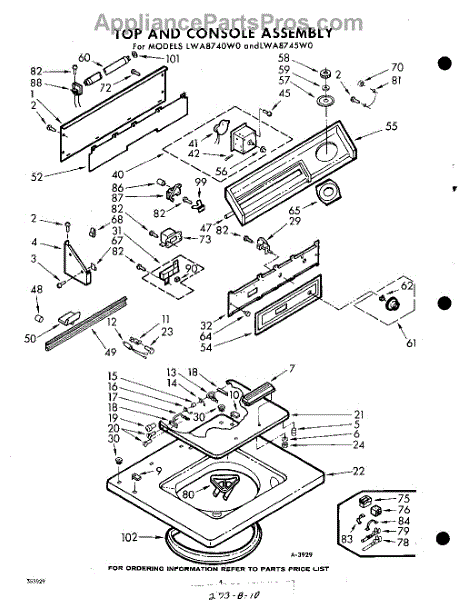 Parts for Whirlpool LWA8740W0: 04 - Top And Console Parts