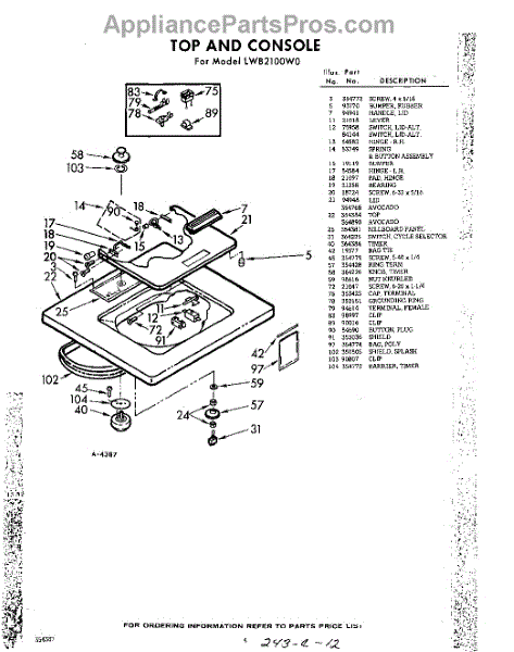Parts for Whirlpool LWB2100W0: 04 - Top And Console Parts